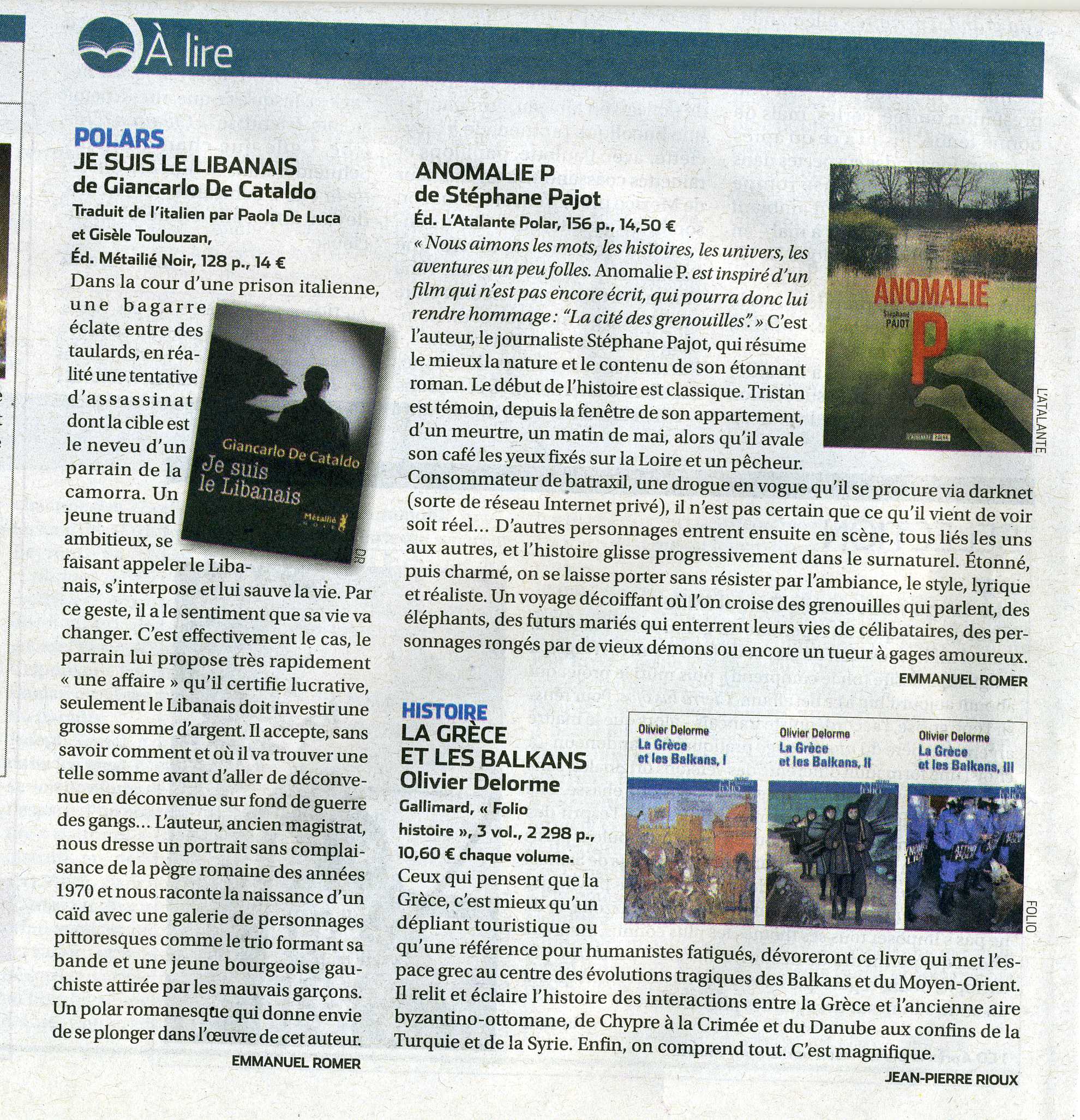 Samedi 14/dimanche 15 : parution dans le supplément du Monde "Culture & idées" d'un entretien d'Antoine Reverchon avec Olivier Delorme sur l'ambiguïté des rapports Grèce/Europe occidentale enracinée dans les multiples ingérences de la seconde dans l'histoire de la première : "Le vote grec est d'abord une revanche contre l'humiliation" (photo du haut de page, photo du bas de page).
