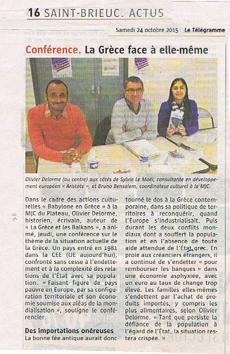 Vendredi 23 : conférence à la MJC du Plateau de Saint-Brieuc sur La Grèce et l'Europe.